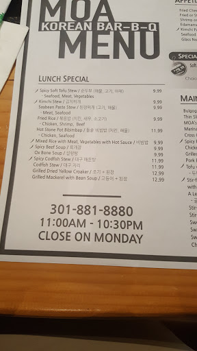 I like Moas tofu soup more than light house, because it is less salty and seems have less MSG. The side dish isnt as nice as other restaurant. But I like the food quality here. If I just want tofu soup, I will usually come to Moa. Their dumplings are also good.