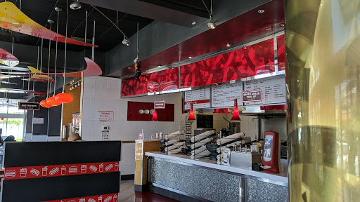 Decent sized Philly Cheesestake. Nothing to rave about. You can get your typical toppings here like raw or fried onions, jalapeños, tomato, lettuce, etc. as well as some sauces like chipotle mayo, mango mayo, A1, etc. Chicken burger is just ok as well. They are milk shakes in addition to fries and onion rings. The onion rings are a good size, but again the flavor is just ok. This place is probably the cheapest option in the Avenue for food. You wont miss anything if you skip out. I like to say that this place is frequented by a younger crowd (teens). My visit here had a young couple who has a general disrespect for PDA. They were pretty much on top of each other in the back rows laying in the booths. Staff didnt seem to care. If they dont care about customers then I question the cleanliness....oh and I did see a staff member (cook) stuffing his mouth with the same gloves he prepares food with. Again.....not missing much.