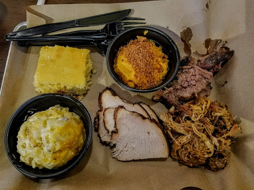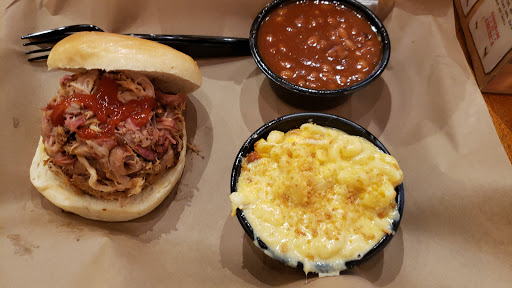 Service was good, place is clean, and food comes out fast. When you get down the line to pick up your food, they open the carryout box and show you the contents so that you know the order is correct. You do need to make sure to grab your own napkins and utensils and throw then in the bag or youll be eating with your fingers. As for the food. Ordered the mac and cheese, turkey sandwich, a drink and a brownie. It was over $14, so its a bit pricey, especially when you look at the quantity of food you get. Mac and cheese - there was ham in it! Luckily I dont have a problem with ham, but lots of people do not eat it for religious or other reasons, if you are one of those individuals, be warned! Otherwise, it was pretty good. Turkey sandwich - two small pieces of turkey, barely covered the surface of the roll. The smoke flavor in the meat is extremely pronounced, it overwhelms the subtle flavor of turkey, you only taste the smoke. And the turkey is horribly dry, need to drown it in sauce to be able to get it down dry. Very disappointing. Brownie was huge and was good. Nice chocolatey flavor and moist.