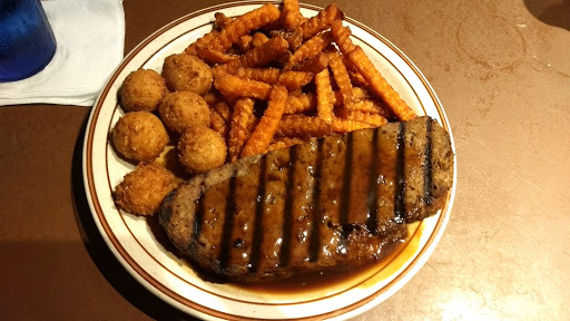 Worst place to eat!! Got bacon cheese fries as an app, all burnt an nasty. They let their customers take their beer in the bathrooms or just dont care, and when ppl did take their beers in there they come out within 40 secs with the beer in the same hand like they didnt wash their hands and touch everything. Very loud can barely hear ppl next to me. Asked for a side of fries with my cheeseburger and never got it and it the burger wasnt that great. Had to spend 80 some dollars on food that 3/5 ppl in family hated. The only good thing about this place is that the servers are nice which is a given. If you want to spend 80 dollars on your family I recommend just driving all the way to outback or Applebees just outside the city.