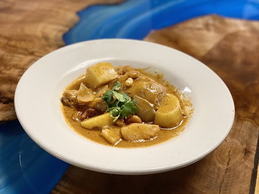 Cool place. Kinda weird that it was run by a 18 and 16 year old but I didnt see who was cooking. It was hella tasty. Good red curry. Chicken is not the best quality. But the curry was on point. maybe get the veg. I got drinking noodles that were 7/10. But Id eat there again. Hard to find good Thai around here and the experience was really nice. Had a good time with my wife. We had the resteraunt to ourselves. Show up early :) . Would recommend