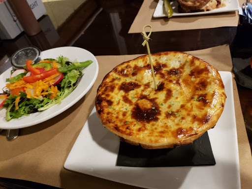 Heavy food - what I had was good, good beer selection, good place to watch a game. Service was good. Id give most of it 5 stars, but... On our first trip there the kitchen screwed up my friends order and basically gave him a plain burger (should have had tahini-style sauce and bacon on it). We sent it back to the kitchen and it came out again practically unchanged, then sent it back a third time. It came back out, finally with the sauce, but with the two most pathetic pieces of bacon Ive ever seen. We were told "thats how it comes." The bartender waiting on us was very courteous about the situation, which inclines me to conclude that the kitchen staff were being assholes. If not for the bartender discounting our meal this situation wouldve earned them a 1-star review. If they werent lying about the style of the burger, then they need to adjust the description in the menu to make it sound less extravagant - but it wouldnt really match the style of the food there if they did.