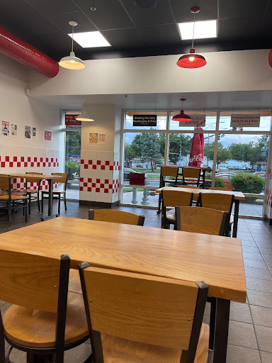They have great staff and the burgers are cooked perfectly and the toppings are fresh and amazing! The shakes were a great idea, if you havent had one yet, try one!! You wont regret it. The fries are always great and freshly made as well and they have sooo many different soda flavors!! Best Five Guys Ive been to!!