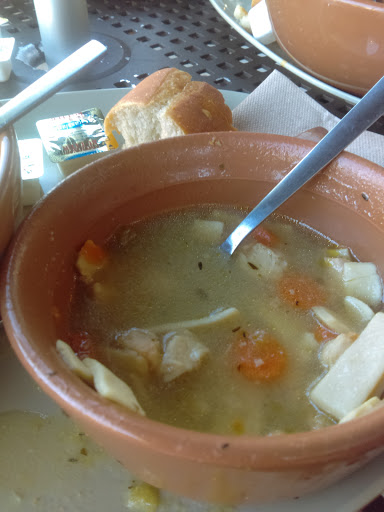 Delicious broccoli cheddar soup! Quick and friendly service.