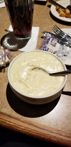 Entered through a door off of the parking lot with no one to greet or seat anyone. Once seated we ended up waiting quite some time to get our waitress to come over to us every time we needed her and she was disinterested and dismissive of us for the most part. She even walked away from me when I tried to hand her my card to pay the check! When we got dinner rolls they were all undercooked. Our daughters burger and fries were good. When my wife and mines pasta dishes came out the pasta was also undercooked. At this point I wasnt going to eat the shrimp in my scampi so we had to get everything taken off the check. Aside from the soups we got, and part of the Ceasar salad (which was suuuuper garlicky) only our daughter actually ate dinner tonight.