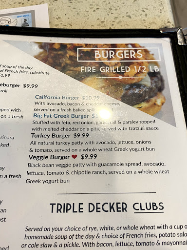 Stopped by the place for lunch while on business with my grandfather. This being the middle of the day in the middle of the week, the place wasnt crowded in the slightest. The service was both too quick and a bit slow: we were seated immediately, and the waiter came by to take our drink order before we had even made it to that part of the menu. Shortly after, with our drinks being promptly brought out, we had to tell the waiter twice to give us a bit more time to decide what we were eating. My grandfather got the all American burger without cheese, ordered medium-well done, while I got the buffalo burger, ordered well done. Both were served with a cup of soup of our choice, and I personally felt a bit rushed at this point. Then the service slowed down a bit, allowing us to enjoy things at a more leisurely pace. My grandfather commented that he liked his burger, but I thought mine was a bit overly messy. In addition, I found that my fries were a bit stale. All in all, its not the best of places, but it isnt the worst either.