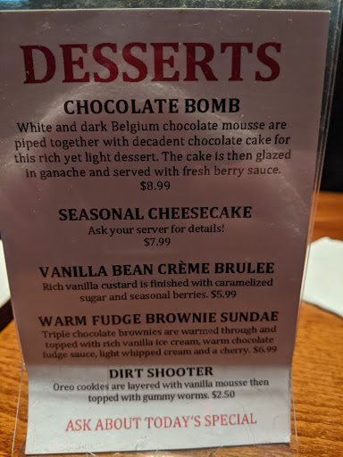 Went here for a family dinner on a sunday. Reservations were made ahead of time so there was no wait to get seated. Waitress was fun and delightful, treated our party well and made us feel extremely welcome. Drink selection was the usually for draft beer. A couple of real crafts, fat tire and heavy seas, were nice options. Fresh and warm bread was included. For the dinner i order a blackened Mahi-mahi with a lemon sauce on rice with coleslaw and a cup of cream of crab. Asked if the soup could come out first with the salads and rest of the appetizers (request was granted). The cram of crab was excellent. Was particularly impressed with the size of the lump pieces in it. I was slightly disappointed with the fish. When it arrived, i initially thought the portion size was a bit small for the type of dish (should note that this was a special), but it ended up being just perfect. The fish had a superb taste and texture (moist and flakey) with the lemon sauce complementing it just right. The rice also added a nice flavor and texture. My only complaint was the blackening, i am used to a blacked dish being well blackened and spicy. This on the other hand was not hardly blackened and the spice/hotness was lacking. However take the blackened description off the name of it and you still have a great fish dish that i would still order. Coleslaw was the usual fair (how can you mess it up). Normally i dont have deserts, but after the desert tray was brought out i think we all changed out minds that night. I order a Chocolate Fudge Cake with a Raspberry Sauce. When it arrive, it was at least twice the size that was presented on the desert tray, and far better than i expected. Even though this is a bit of a drive out of my way, i would consider returning again (also helps i have family near by). The location is in a shopping center at the east end of 100 so its easy to get to. The dining area is a medium size but east to get around. While i didnt;t have a chance to really take it in, the bar seems nice and big, with plenty of room. Hopefully ill have the chance to return again.