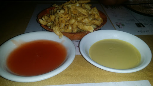My fav vegan friendly place to eat. "Orange" dishes are made w/real orange & red chilis. Spice is accomodated to your taste. Good service, great food.