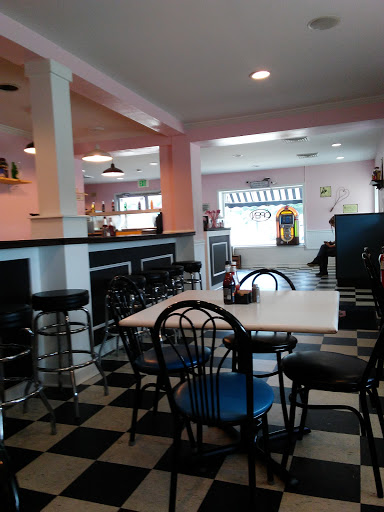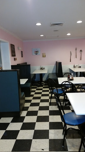 First impression..."Omg another 50s style joint"...2nd impression...The cashier/waiter is outstanding and his demeanor is that of a waiter in a fine restaurant...Its clean and quaint in atmosphere...but back to the waiter...I could easily see him in a suit in a NY favorite...IMPECCABLE, attentive service and mannerisms...Than the food...I got it to go...and Wow was I impressed! when my simple chicken steak sandwich was as big as both of my hands put together with fresh, THICK chicken breast meat and HOMEMADE fries that made me swoon with each bite...Worth my workout!... 5 stars all around. :)