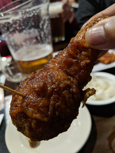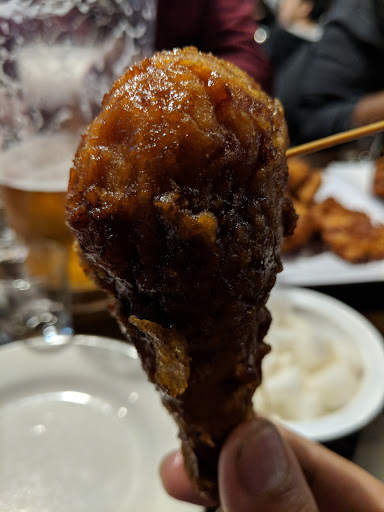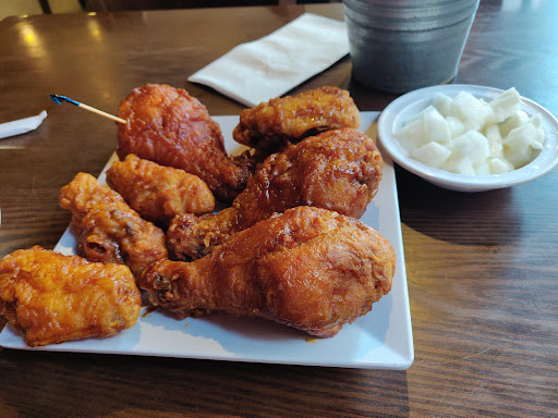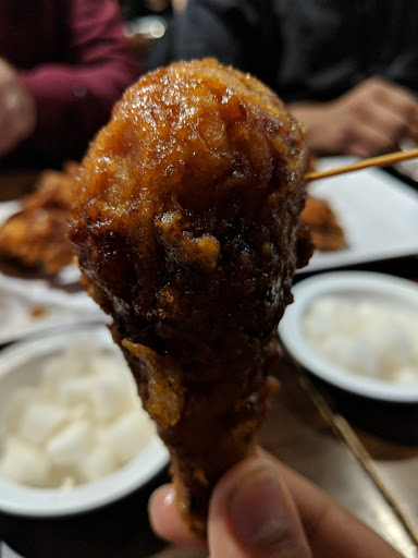 It should be criminal to sell chicken this good. This chain is legendary and growing rapidly in the US for good reason. This is Korean bar food, so ordering it is rather simple. You can get wings, tenders, legs or some combo of this, but trust, just get the wings. They come in two sauces, soy garlic and spicy. You can also get half and half, which could mean a mixture of both on the whole order or half one way and half the other... Ive never had it consistent, but I always get it that way. Warning: The hot can be mouth numbing. This wont deter you from eating it, but just an FYI The chicken is fried in some special way that renders the skin to an glass shattering like texture, covered in these amazing sauces. Be prepared that once you start eating youre going to find it nearly impossible to stop. You can pick from a small selection of sides with your order (go for the kimchi coleslaw, all the other stuff is mostly standard). There are other things on the menu, but you didnt come here for that. Prices are beyond reasonable, in line with other national chain wing joints. The pieces are much bigger though. Service here (and at most others) can be really hit or miss. Weve called in orders 30 minutes prior, and still had to wait another 30 minutes on arrival. But no worries, theres a full bar with decent affordable beer and cocktails, with tons of TVs showing K-pop and sports. Dont worry, heaven thats been deep fried and sauced is on its way to you shortly.