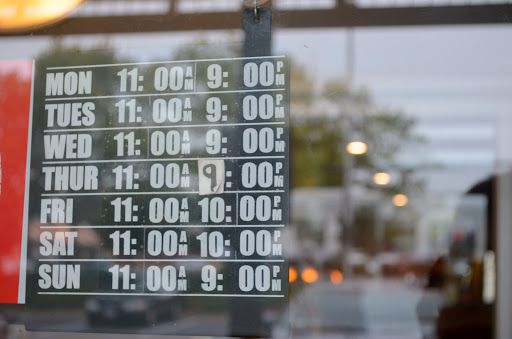 | Working: | 11AM–9PM 11AM–9PM 11AM–9PM 11AM–9PM 11AM–10PM 11AM–10PM 11AM–9PM |