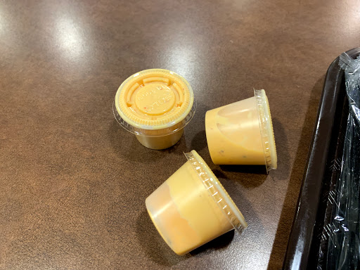 The chicken skin is not crispy at all, and a bit salty. They give you one small sauce, and will charge 48cent for additional sauce. Seriously? Charge extra for the sauce?