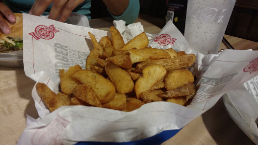 Staff was friendly but a few issues. 1) the dining area was a mess. Customers left yet tables have yet to be bussed. 2) My kids kids meal was weak, especially my daughter who ordered apples which were slimey and tasted like lemon juice. 3) The 1/3 pound burgers were lost in the bun...so much unnecessary bun. Seems like Fuddruckers might be getting old.