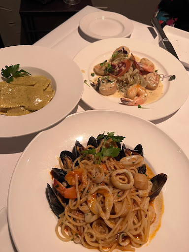 For our party of 4, 2 were pleased but the other 2 were not for a couple of reasons. First of all, it was busy, but nevertheless, we couldnt even get the waiter to bring some bread because he said he couldnt until he took our order, which took some time in itself. On receiving the entrees, 2 were pleased, as stated, but the other 2, including myself, who ordered stuffed ravioli, were not. Bothe of us felt that the 10 or so small raviolis were far too skimpy for what we were paying. Nevertheless, I thought the ravioli was tasty but my friend did not and asked the waiter to take it back and give him what someone else got, which he did. No adjustment was made on the bill. .Given all of this, the restaurant could take a lesson from another we visited recently, which, without asking, did not charge us at all for a unsatisfactory entree and also gave us a free meal coupon for the future.