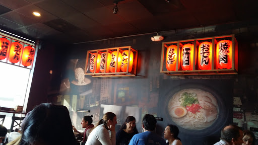 Service here is horrible. Waitresses would bring out appetizers after entrees. Main side items featured with the dish would come way after the entree has hit the table. Most of the diners in the room I saw were sitting around for more than 30 minutes waiting for their ramen. The atmosphere here is very awkward there interior designer needs to be fired. Theres 4 TVs that show a 70s game show, children getting operated on, and your typical NGO commercial ads. I came with a party of 5 we ordered different variations of the Tonkatsu, Siso, Spicy Miso ramen with pork belly, Kim Chi and Cha Shu. The pork belly was grilled nicely, noodles were cooked well not to soggy and the portion size was average. The Kim Chi had a awkward after taste, broth a tad bit salty and the Tonkatsu was dry even with their sauce. We ordered the grilled pork belly with Cha Siu the sauce was suppose to be spicy mayo, but it tasted like buffalo sauce. The Takoyaki appetizer was delicious with the octopus fried in the center and texture. We shared the Black dragon and Flying dragon rolls. Both good, but mediocre. Overall, the food was ok I was not wowed and there service was very disappointing. I heard the best time to eat here is during lunch right when they open. Ill swing by in the future I just hope there servers have been adequately re-trained.