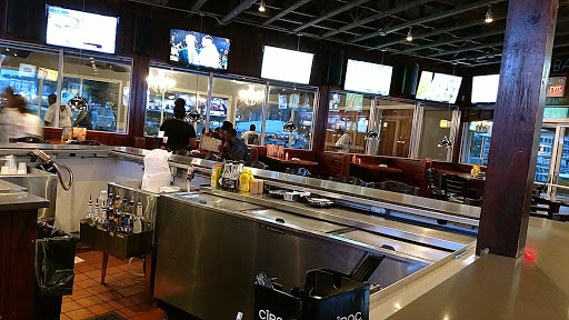 The wait staff, particularly the head waitress in the bar made me give Brew River four stars; that and the river view patio with covered bar outside. The food is generous but mediocre. The bar and restaurant are large with plenty of seating, including a banquet area inside. The bar is a huge sports bar with large tvs at every angle possible. It has booths and scattered tables. There is no decorative theme and the bar is quite dark yet not cozy or intimate. A manager who could choose a better chef and do something with the inside ambience is sorely needed. This is a male clientele oriented bar with specials of double servings of beef and crabs; there are sports activities. Good local food is not a reason to patronize this bar. Big televisions with sports highlighted, and huge servings is what this bar/restaurant is all about.