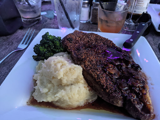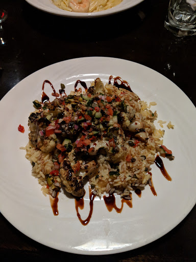 DONT GO HERE!! This place is terrible. Service was rude and the food was horrible. Our server Ashley was snarky towards us from the very beginning and it took forever for anything to come to the table. We waited over an hour for our food only for it to be burnt and disgusting. All 3 burgers were burnt and not even a little burnt it was entirely burnt like the cooks just didnt care. My friend got shrimp scampi and it was sweet like they had put sugar on it for some unknown reason. The portions were small and the food was expensive. Theres no theme to the restaurant just dark. The hostess wasnt even friendly when we came in. I will never go here again. I wish I could give it zero stars.