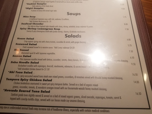 I am mostly a sushi eater, sashimi sometimes. This place has the sushi game locked down. Not to mention the sake and drink list. If you like sushi and live in Salisbury, i dont know why you havent been here.