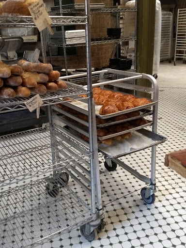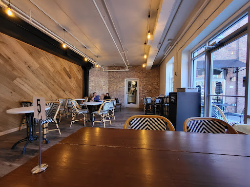 The chocolate almond croissant was too bread-y and not light and flake-y. That was the only thing we bought, at the recommendation of a friend. The space was aiming for cozy that crossed into "stuffy" with similarly boring decor. The walls are yellowish brown with olive green moulding. The chairs are all heavy wood with leather. The lighting is warm and dark except for the unharmonious fluorescent lights coming from the drink holders. The kitchen is somewhat open, but not in a purposeful way. The cacophonous sounds of the bread-cutter prevents any purposeful conversation.