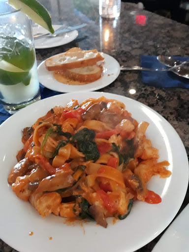 Cafe Mezz is one of my favorite special occasion restaurants. They use organic sustainable ingredients. Ive been going since before they had the switch to organic sustainable ingredients and the food quality has always been there and continues to be. You get amazing Italian dishes, both classic and their own spin on things. The come out piping hot, with great presentation and the perfect mix of flavors. Its on the pricey side, but its also on the fancy side inside and in quality and presentation. You get high end restaurant presentation without the high-end price and serving size. So, yes, its pricey compared to typical Italian. But you do get better food, better presentation, and good portion size (youll finish it and be full). The only complaint I have is that its easy to miss coming southbound and requires a U-turn if coming northbound. But its worth the U-turn! The restaurant has a classy look and the food to match!