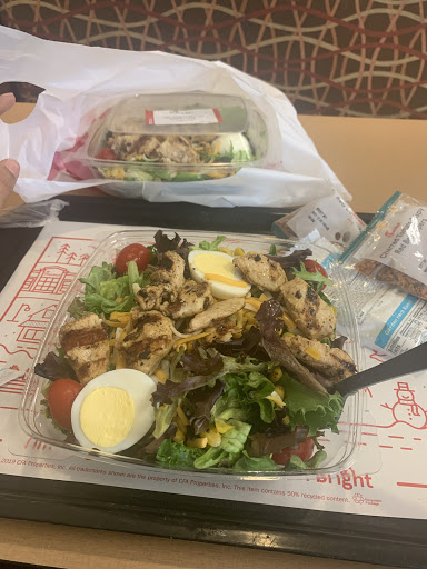 If you have to eat "Fast Food"...you really have to try a Chick-fil-A. The service is amazing for fast food! Wonderful people working at the counter and the bonus is people come to your table and ask you if everything is OK and can they get you a refill on your drink! Food seems to be healthy and the menu offers a calorie breakdown by item; for example salad is one calorie count, dressing another and toppings another so you really know how much you are intaking. Very special plus for this Chick-fil-A, FRESH and beautiful flowers in several locations through out the restaurant.