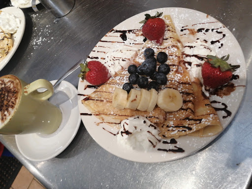 Food was just OK, coffee doesnt include real milk, service was HORRIBLE! I had to ask twice for a glass of water. After 20 minutes we asked how our food was coming along, they said its on the way. After 30 minutes 2 tables that had arrived well after us both had their food and we were still waiting. Once I pointed this out they started making our 2 crepes.