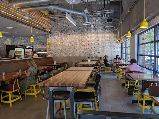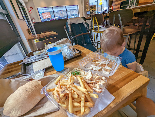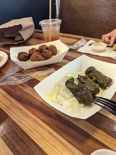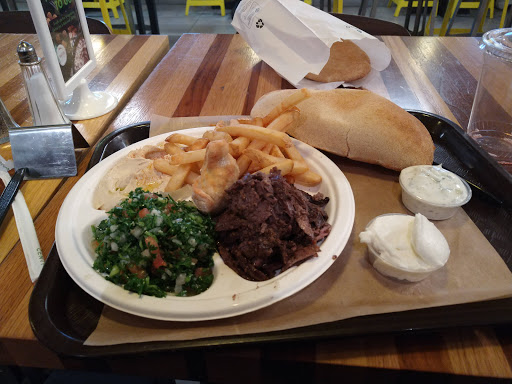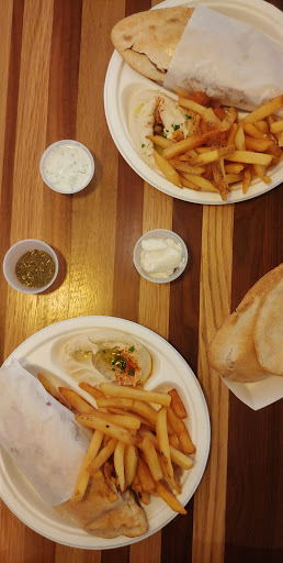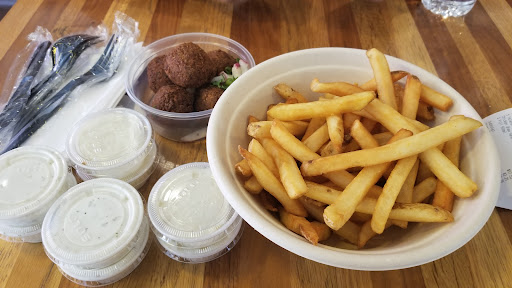 It does have kind of a fast-food Chipotle kind of feel, but the food is good and speedy. They could easily market this as a fast food chain! They have outdoor seating and the location is very central to downtown and the mall. Service was very good and the food was satisfying - a good value in Silver Spring. As a vegetarian, I love falafel and this style of food and Ive eaten a lot of it. I absolutely love the way they package their falafels -- Easy to eat and not messy. The roasted potatoes that came with the falafel platter were very tasty. The falafel itself was tasty, not as spicy as I like them but they held together well (didnt crumble too much) and everything stayed inside the slightly crunchy pita. Being picky and not liking radishes, I would prefer regular pickles or cucumber to radish inside, but thats just me. Being picky again, I was also expecting more tahini (Im not sure there was even any in there), which I know would have made it messier. The chick pea balls were a tad dry because of the lack of tahini, but the other ingredients did help with that. Easily fixed, though - Im going to ask for extra tahini on the side when I go back. They use styrofoam containers for their to-go orders, which may not be the best "green" solution.