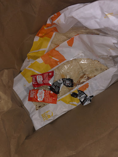 My husband likes the breakfast egg and sausage wrap. I like Taco Bell.