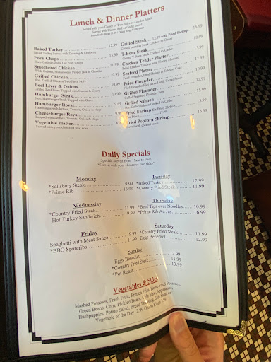 I had a desire for a turkey dinner, and I know they serve one here. I know the time I came is not busy 4pm hour. I ordered the soup (New England Clam chowder) and the baked turkey dinner. Yes it pre cooked stuff, not home made. Its ok. My sides I ordered were mashed potatoes and gravy and corn. The soup came very fast. And literally 3minutes later the entree, I wasnt eve half done the soup. And the order was wrong, she served me green beans. I corrected the order and she took away the green beans and brought corn. I was drinking water. When she brought the corn, I was almost out of water. She never refilled the glass or offered. After she dropped off the corn, in fact I never saw her again. Another server servicing a table across the room came over to me when I flagged him down for a refill of water. I was never checked on during my dining exerience. The initial waitress name on the bill is Serke. Needless to say I wont be back anytime soon. Sadly I really like their breakfast.