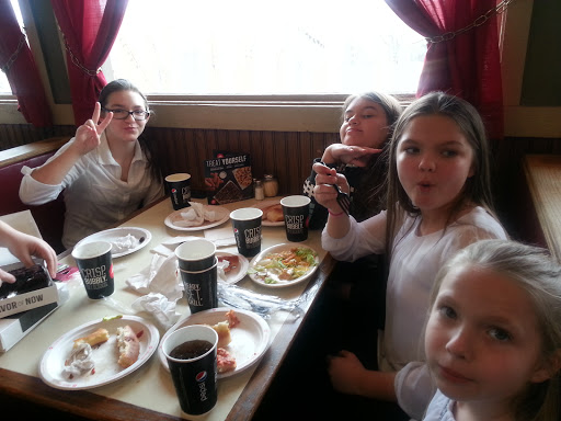 This pizza hut is not bad at all. Always plenty of seating since theres never a crowd. Good place to bring the kids since no one will be there to care if they run around and act like kids. Its best to just get up and refill your own soda; youll go thirsty waiting for the wait staff to come around and check on you. Pretend youre at home, only you dont have to clean up afterwards. Toppings were plenty. Pizza tasted like any other Pizza Hut. Call ahead and place your order if you plan on eating in the dining room so you dont have to wait. Thats what we always do.