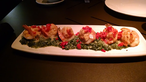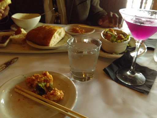 I had an amazing experience here. The wait staff were very personable, and non robotic. They were such a pleasure to be around. James, Jake, and Carly made me feel like I wasnt a burden and that they actually enjoyed doing what they do. Not to mention making us laugh. There is a one page menu which has its pros and cons. There didnt seem to be many options. I also dont prefer to purchase Tilapia at a place like this, I feel like thats such a common house recipe fish. So many people in our party ordered the Bang Bang shrimp. Apparently it was "banging", its a $10 appetizer (probably to share) so i didnt order it for myself. I would recommend going here, the food was good, a very nice low lit atmosphere, and the staff was a pleasure.