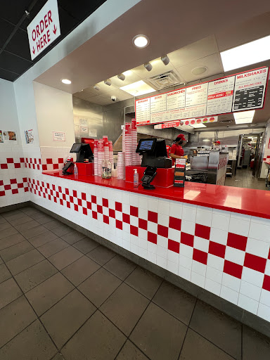 There is always something at this place. Cash only we were told yesterday. We are out of fries last week? Even if they or not busy and there is no line, there is a wait. I have been to a few Five Guys Burgers and the food is pretty much the same everywhere and this location is no exception.
