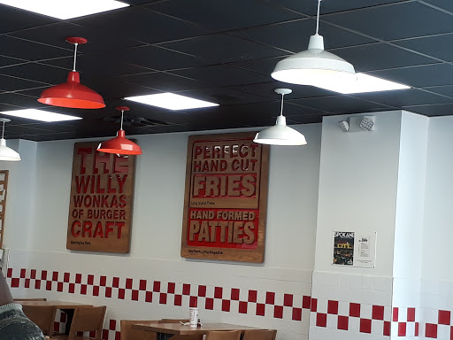 Most disgusting Five Guys Ive ever been to. All the tables were dirty, piss all over the floor in the bathrooms, just disgusting all around. No hair nets being used in the cooking area either! This is the first Five Guys I will not eat at again.