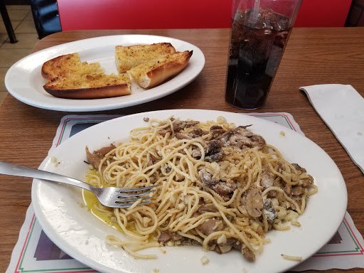 We were just looking for a quick pizza Italian kind of restaurant. We were surprised by the quality of the food. I loved the pizza and the bread. The size was great for a small pizza that allowed us to bring some back home. I had ordered the small and it was able to feed two people easy. The bread was fantastic!. Servers were very nice but the cashier lady was kind of dry. Nice overall though. I am definitely going back to that place for a nice pizza. Dont be fooled by the building. It has great food.