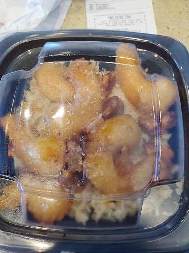 We always like to go inside to pick our food choices. Food is nicely displayed and constantly being rotated out for freshly made items. Slight wait for food this visit during lunch rush, but worth it for freshness. The Orange chicken has a slight kick of spice but is delectable. Honey walnut shrimp is my favorite. Nut allergies are clearly labeled with each menu item and staff were very accommodating to ensure my spouses nut allergy had no cross contamination. Staff are friendly and even gave us a free drawstring bookbag. Very pleasant experience, highly recommend.