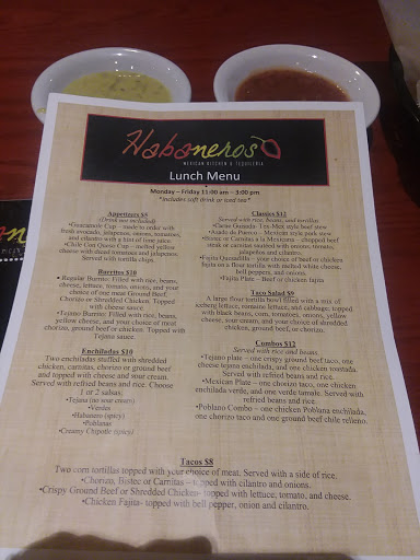 Good things: have a lot of real Mexican things I the menu. A great tequila menu. Serve Jarritos soda (tamarind. So delicious). Their huaraches were awesome... with the warm habanero salsa. Bad: some food was really bland considering youre in a restaurant called Habaneros. They close the bar and restaurant at 10 on a Friday night. Its tundra cold in there. The most bland rice Ive ever eaten. The servers (Katherine) and the host were very accommodating, but they dont know their tequilas like they should.