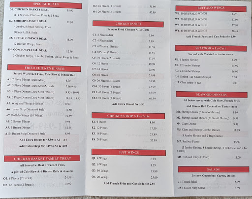I was their biggest fan as a child. My parents asked what do you want to eat. I would alway say Chicken Basket. I went there yesterday so excited cause I moved back to the area I havent had it in a long time. I didnt even get my food. The service was terrible a older lady had menus out on the counter that were no up to date for people to read (3 with hardback) only one was good. Then I went to order we asked for a three piece chicken dark meat 2 thighs and a leg she said no 2 legs 1 thigh. I was like um can I get 2 thighs one leg. She said yes but will charge me extra. We also asked for a chicken breast on the side she said $2.50 then said you have to buy too. This place use to be such a great place food was amazing but now its money hungry which I can understand they need to make money but having menus with different price and labeling dark meat not specifying which pieces. I told the lady Im disappointed I loved this place they have really changed. She got upset and said no I have old menu I can show you.. no thanks they were already at the counter. I will try my luck at a different location. Its a small establishment and if they keep this up they may not last long... it wasnt even about the food it was the dishonesty and service. I felt like I was being forced to buy something if I wanted before they sold chicken by pieces too not they dont but they will sale you a chicken breast for $2.50 which is a price I may have paid but to tell me I have to buy 2 in order to get it its a scam.... try the other locations rockville etc. Im going to see how they are.