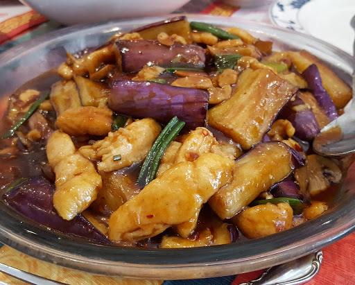 My wife got the Shrimp Wonton Soup, and I ordered the Eggplant and Chicken in Hot Garlic Sauce. Both were excellent. The portions were large, the prices affordable, and the restaurant was clean and attractive. Apparently, you can even order portions of their roasted meats for takeout, something perhaps worth trying in the future. Oh, and they take credit cards, which is not always a given in the Wheaton area.