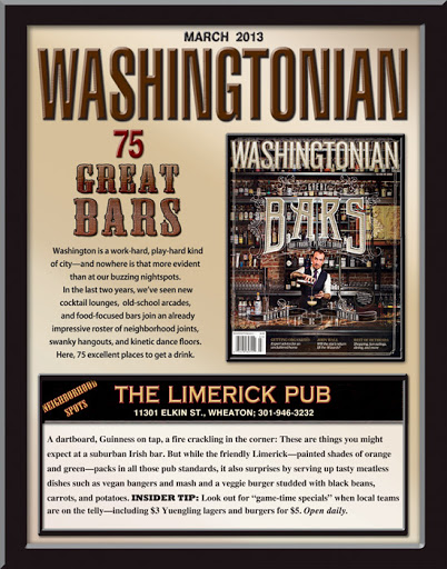 There arent a lot of places to call "your bar" in Wheaton. The Limerick generally fits that bill. The food is generally fairly good, with their chicken wings standing out. Burgers, fish and chips and other daily entrees also try to impress, even if they sometimes miss the mark. Loss of fault specials and deals, plus a trivia night that can sometimes get a little intense. The best part about this place is that it suites at a nexus close enough to stumble home after a few too many drinks.