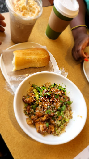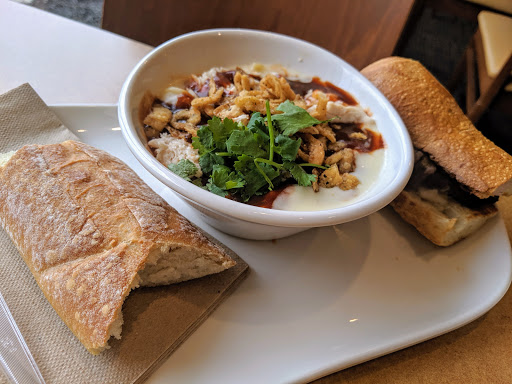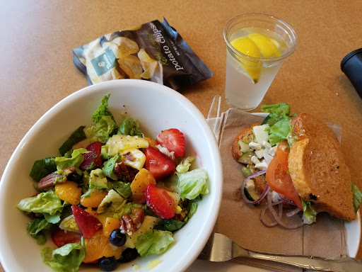 the food is delicious and you get plenty for about $5. I ordered the grilled chicken avocado panini. I do not like avocado but I ordered it anyway because I wanted a hot sandwich and I wasnt disappointed. I also had the Mediterranean veggie. It was good but nothing like the one I had at the Panera Bread closer to DC. The decor is beautiful. The bathroom could be cleaner.