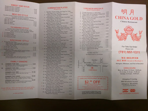 Food us delicious, not overly greasy, nor overly salty. Very generous portions and the food is fresh. Been twice in two weeks, got enough food for me and my coworkers, food was hot and fresh after pickup even though its 30 minutes away. Definitley my favorite Chinese takeout in MA. No menu online, so Im putting pics of one here.