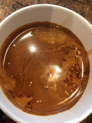 Garbage espresso. Did not clean the machine or weigh out the shot. Poor crema and a very dirty taste. Better than star bucks though