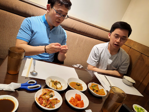 Service is a little slow, but its because this place is really really busy. You know what they say... if there are a lot of Asian people at a restaurant, you know the Asian food is good. The ban-chan (complimentary small dishes) are good. Especially the square, turnip kimchi which is pickled well. I always go for the nangmyun (cold noodle soup) which comes with black bean noodles which means it is healthier for you. Put some vinegar and mustard in there, and you have yourself a great summer Korean dish.