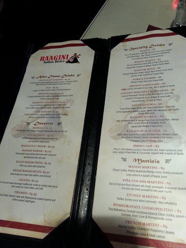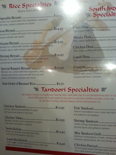 The waiter was indifferent, the menu uninspiring, presentation poor and the food wasnt good. Its not cheap, either. I ordered the chicken tikka saag. The chicken was rubbery and didnt look or taste tikkad. The sauce didnt taste fresh and was bland. One of the chapati had pale green stains around the edges. I asked the waiter if it was OK. He didnt even look and said there was nothing wrong with it. I left it. After finishing the meal, I noticed dried on red sauce on the outside of the saag serving dish. The saag was green. Avoid this place.