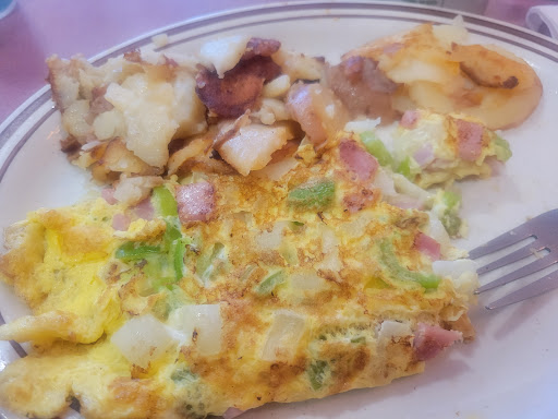 Food is okay, but Im not particularly keen on their habitual heaping side of greasy potatoes with EVERY breakfast egg entree; usually, and very politely, I ask them to hold the potatoes, and thankfully they will oblige.