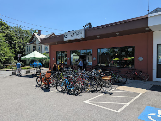 One of the better non commercial coffee houses with great food choices. Seating is 7th grade wood chairs that kill you ass. Cambridgian type with no humor, social skills or personality...I prefer the dogs to the people. Bike able destination off the pathway. Although bikers are not attentive to cars, traffic, crossings etc. Suicidal or dumb? Staff is great. But need more silliness...Too subdued.