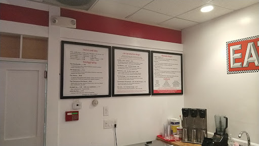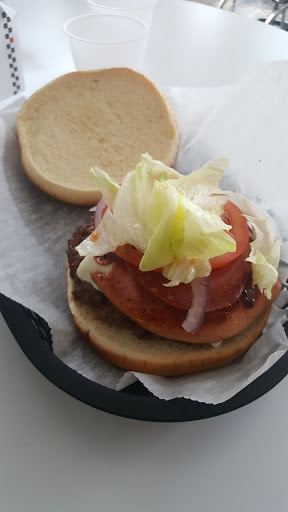 This place is a counter service burger joint with a retro theme. When I walked in here, it looked pretty empty. We ordered our burgers from the confusing but actually fairly limited menu. The order service was friendly and prompt. We then waited 35 minutes for our three burgers. There were signs about it not being fast food, but I thought that was a little extreme. I literally could have bought meat, ran home, cooked burgers, and ran them back faster. The burger style was steamed, like a really thick McDonalds burger. Thats not my favorite burger style honestly, but i know there are aficionados and it was salty and greasy at least. The onion rings were standard and fine. In short, I would come back here again, but only if I was lazy and desperate for a burger. And I would try to call my order in ahead.