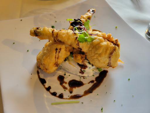 Fabulous meal and excellent service. Loved the Calamari steak appetizer in a lemon caper sauce, we split two entrees - lamb chops and haddock with lobster mashed potatoes, both excellent. And split two desserts! Creme Brulee and Molten Lava Cake (not too sweet). Mmmmmmmmm
