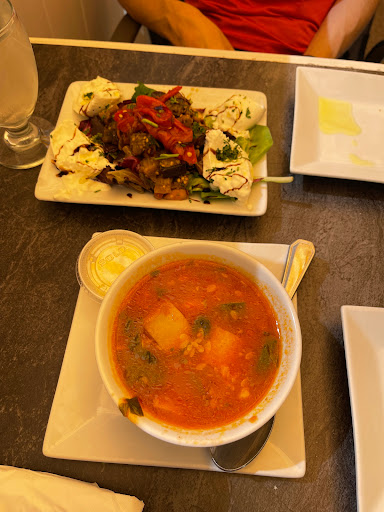 Sweet cafe and bistro with the charm of Italy We decided to walk over to this charming little spot in the Auburndale section of Newton while visiting our son and his friend. Theres ample street parking and a lot across from the restaurant. Charming first appearance outside with three wrought iron tables and chairs with umbrellas that were nicely flanked with pots of lovely flowering plants. Once inside to the left and in front of you is the bar area with a few tables at the window and perhaps 6 seats at the bar. To the right and straight back is the seating for approximately 30. Brick walls, nice lighting and a very friendly atmosphere. It reminded me of a lovely cafe in Siena. The boys opted for burgers, Turkey w lettuce, tomato, onion, cheese and homemade cranberry relish and The Portabella (Vegetarian) with Grilled portabella, grilled vegetables, Brie cheese. You can request gluten free bread. It was casual plating served with a bag of chips and a zesty garlic pickle. My Mediterranean Salad was fabulous and I mean it! Ice cold and crisp romaine lettuce with a generous scoop of hummus, tabbouleh, artichoke hearts, olives, yalanchi grape leaves, eggplant salad, roasted red peppers, wedges of lemon and yummy grilled wheat syrian bread. I will definitely order this again! Our waitress was very kind and efficient. We happened to be there on the night of the bartender Anthonys birthday! So it was cake for everyone! Such a nice crowd too. They have a case at the end of the bar with all their delightful homemade desserts - cannolis, tira mi su, cakes, cookies! Next time well have to try a few. Their dinner menu changes nightly so go with an adventurous palate and prepare to be delighted. Looking forward to the next mouth watering meal...