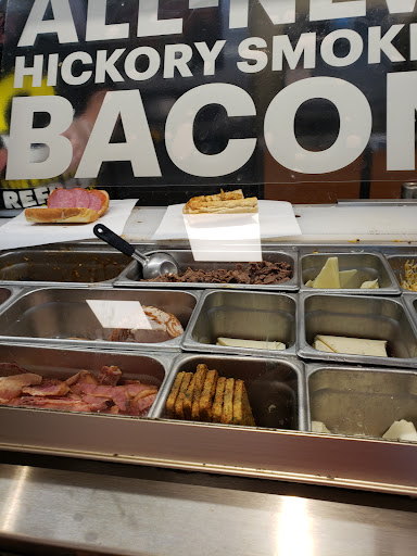 Small parking lot, kind of hard to get into. Staff is ok and usually not busy. Also they have pepper jack cheese.